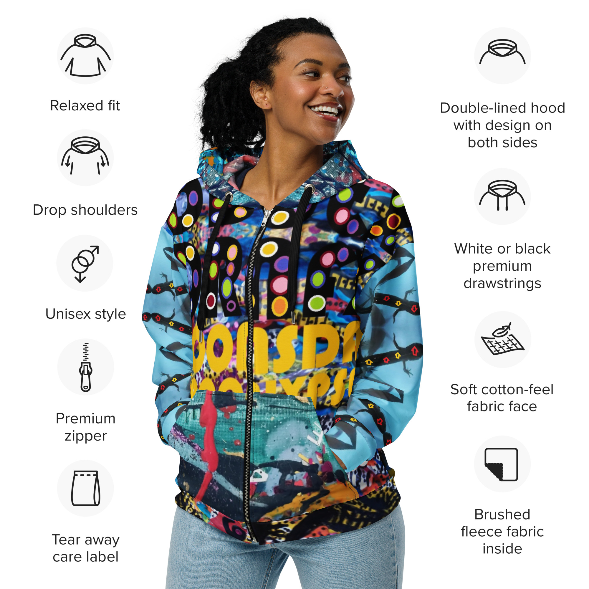 Meet the zip hoodiea must-have for everyday wear. Crafted from 95% recycled polyester, it combines sustainability with style. Soft both inside and out, this unisex hoodie offers a relaxed fit with drop shoulders. Plus, its designed to last, keeping you cozy and fashionable for years to come.